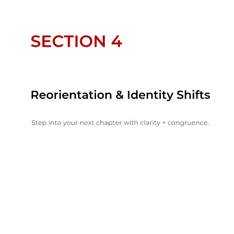 SECTION 4 Reorientation & Identity Shifts Step into your next chapter with clarity + congruence.