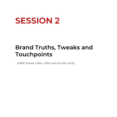 SESSION 2 Brand Truths, Tweaks and Touchpoints LEARN: Review, refine, reflect and act with clarity.