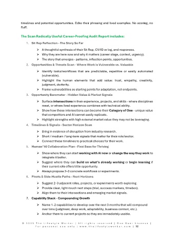The Scan Radically Useful Career-Proofing Audit Report includes: