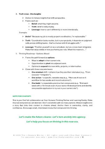One mindset shift → reframe how they see their role/value (e.g., “From