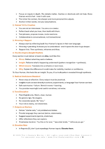 Insights must connect directly to actions, experiments, or language Your Human can test.