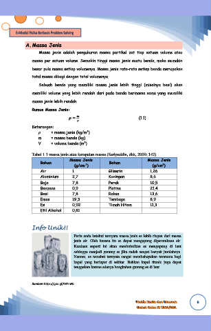 Tabel 1.1 massa jenis atau kerapatan massa (Saripuddin, dkk, 2009: 142)