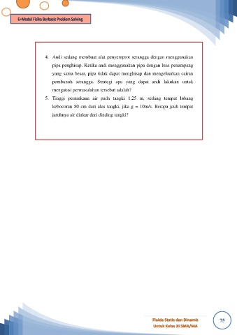 5. Tinggi permukaan air pada tangki 1,25 m, sedang tempat lubang