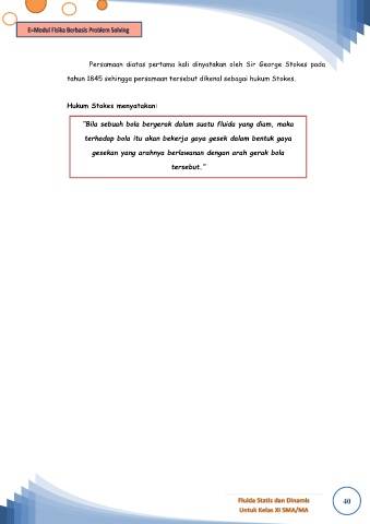 tahun 1845 sehingga persamaan tersebut dikenal sebagai hukum Stokes.