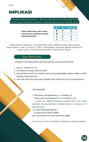 Implikasi dari pernyataan dan ( ⇒ : dibaca p maka q) bernilai