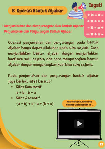 1. Menjumlahkan dan Mengurangkan Dua Bentuk Aljabar - x - = +