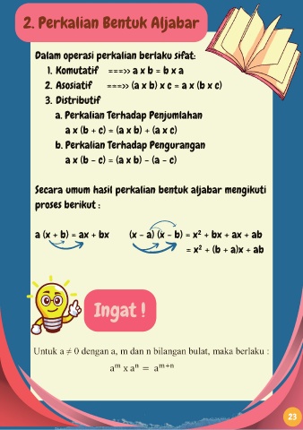 Secara umum hasil perkalian bentuk aljabar mengikuti