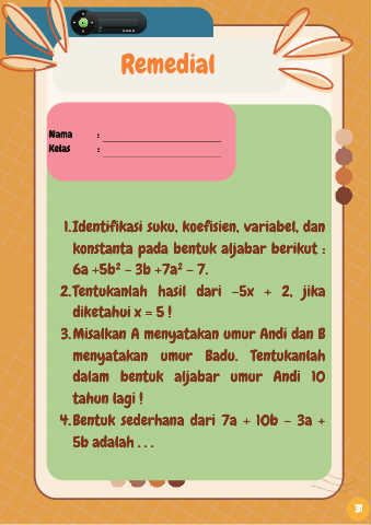 4. Bentuk sederhana dari 7a + 10b - 3a +