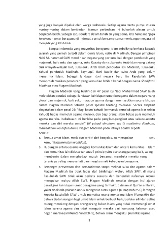 dalam Piagam Madinah sebuah pasal spesifik tentang toleransi. Secara eksplisit