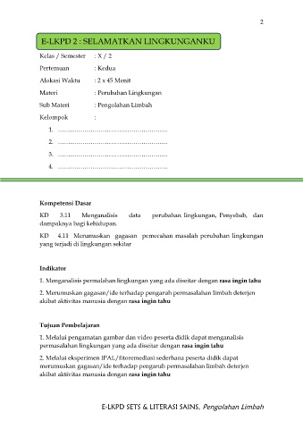 E-LKPD 2 : SELAMATKAN LINGKUNGANKU