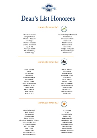 Dean’s List Honorees