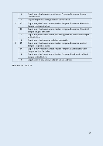 2 15 Dapat menyebutkan dan menjelaskan Pengendalian emosi kinestetik
