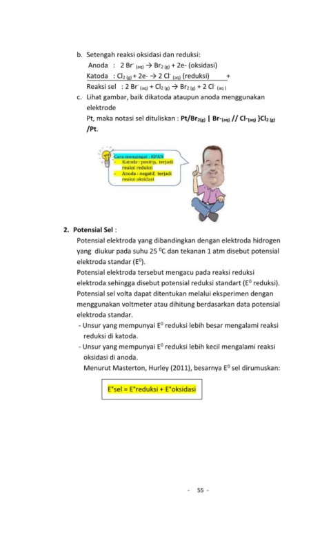 Reaksi sel : 2 Br (aq) + Cl 2 (g) → Br 2 (g) + 2 Cl (aq )