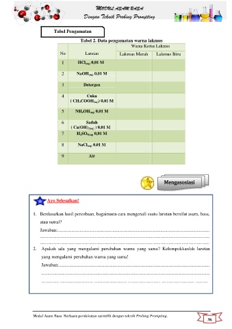 Modul Asam Basa Berbasis pendekatan saintifik dengan teknik Probing Prompting.