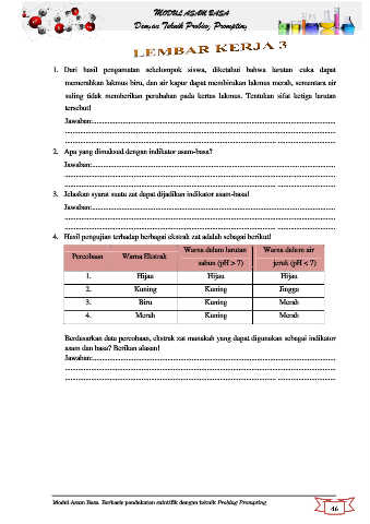 Modul Asam Basa Berbasis pendekatan saintifik dengan teknik Probing Prompting.