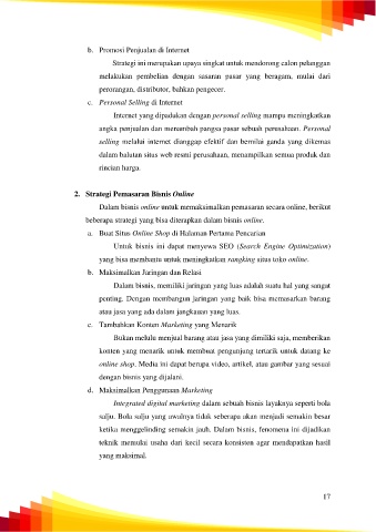 Internet yang dipadukan dengan personal selling mampu meningkatkan