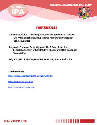 Sally, V. K., (2015). IPA Terpadu SMP Kelas VIII. Jakarta: Yudhistira.