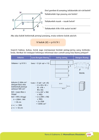 Dari gambar di samping, tuliskanlah ciri-ciri balok!