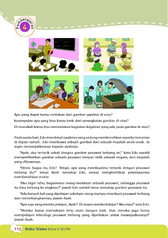 “Ayah, aku tertarik sekali dengan gambar pesawat terbang ini,” kata Edo sambil