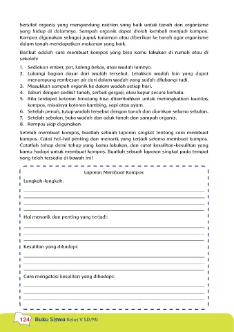 kompos. Catat hal-hal penting dan menarik yang terjadi selama membuat kompos.