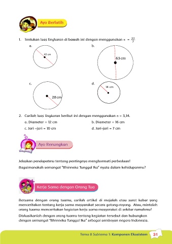 2. Carilah luas lingkaran berikut ini dengan menggunakan π = 3,14.