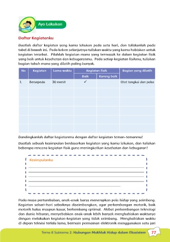 yang baik untuk kesehatan dan kebugaranmu. Pada setiap kegiatan fisikmu, tuliskan