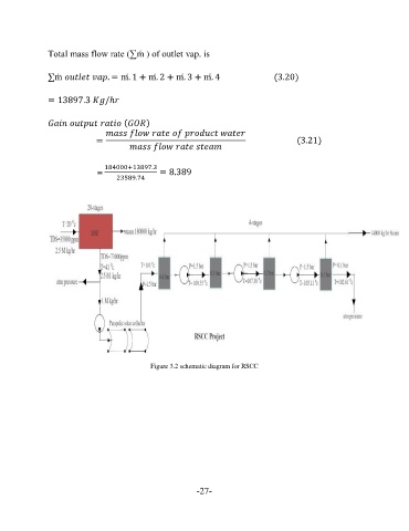 Total mass flow rate (∑m ̇ ) of outlet vap. is ∑m . = ṁ. 1 + ṁ. 2 + ṁ. 3 + ṁ. 4 (3.20) ̇ = 13897.3 /ℎ ( ) = (3.21) 184000+13897.3 = = 8.389 23589.74 Figure 3.2 schematic diagram for RSCC -27-