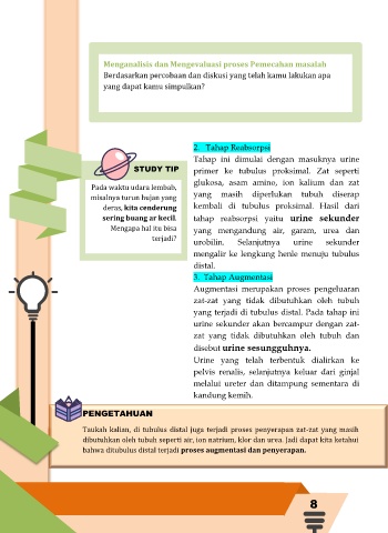 sering buang ar kecil. tahap reabsorpsi yaitu urine sekunder