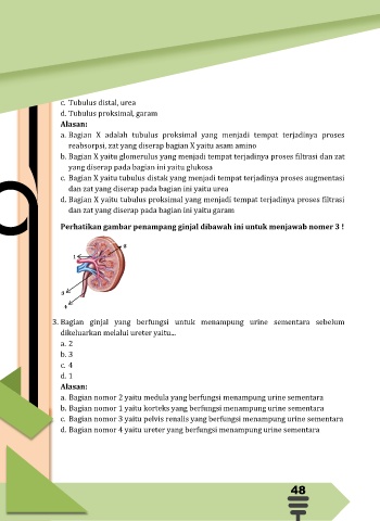 c. Bagian nomor 3 yaitu pelvis renalis yang berfungsi menampung urine sementara