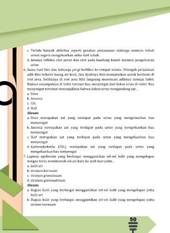 c. H2O merupakan zat yang terdapat pada urine yang mengeluarkan bau