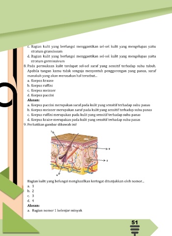 Bagian kulit yang befungsi menghasilkan keringat ditunjukkan oleh nomor...