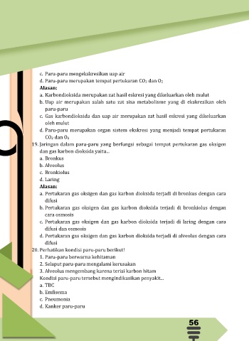 c. Gas karbondioksida dan uap air merupakan zat hasil eskresi yang dikeluarkan
