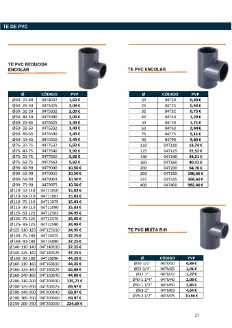 Ø125-110-125 04T125110 24,95 € TE PVC MIXTA R-H