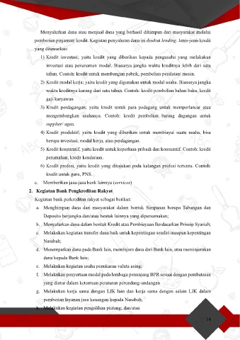 pemberian pinjaman/ kredit. Kegiatan penyaluran dana ini disebut lending. Jenis-jenis kredit