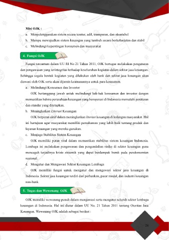 Fungsi tercantum dalam UU RI No 21 Tahun 2011, OJK bertugas melakukan pengaturan