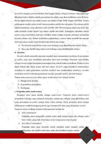 go public yang akan melakukan penjualan surat-surat berharga. Pemodal yang berlaku