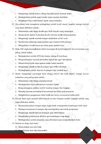 15. Jika sebuah bank mengalami peningkatan jumlah kredit macet, langkah strategis terbaik