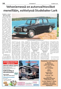 Lark on Studebakerin rasperä, 2-ovinen coupé, Tekniikan Maailma-lehden työssä Suomen pienois- vio ovat avoinna säävara-