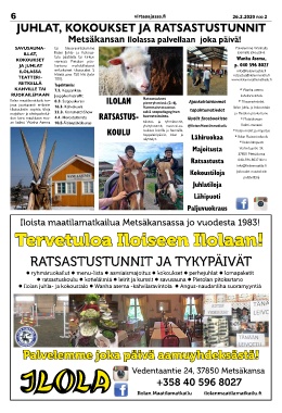 Ilolan maatilamatkailu tar- 8.3. Saippuakurssi ILOLAN Ratsastukset Ajankohtaisimmat * Tilausravintolat: