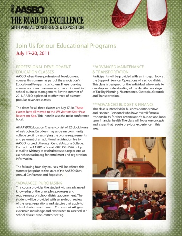 2011, AASBO is pleased to offer three of its most and Transportation.