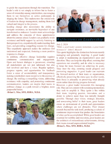 -Brian L. Mee, SFO, RSBA, M.Ed. their team, inspiring passion, innovation, and a