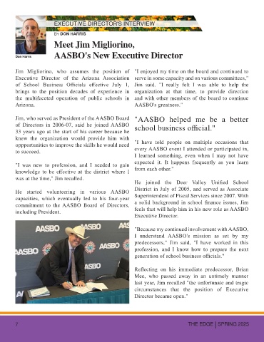 commitment to the AASBO Board of Directors, a solid background in school finance issues, Jim