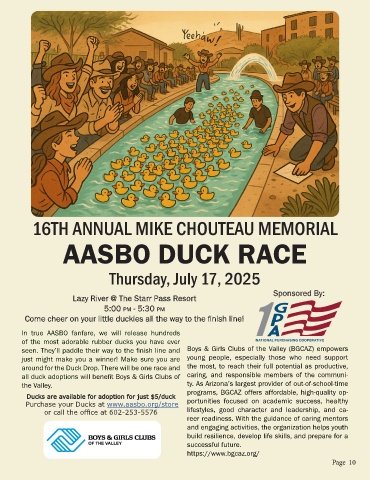 all duck adoptions will benefit Boys & Girls Clubs of   caring, and  responsible  members  of  the  communi-