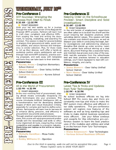 In the ever-evolving field of procurement, stay-          TICKET   REQUIRED                                          WEDNESDAY JULY 16 WEDNESDAY JULY 16