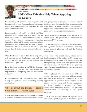 fillers, which all come with He encouraged AASBO members to contact ADE the centralized system for managing all grant