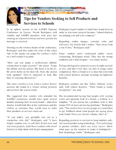 In an upbeat session at the AASBO Summer Rodriguez urged vendors to build their brand story in
