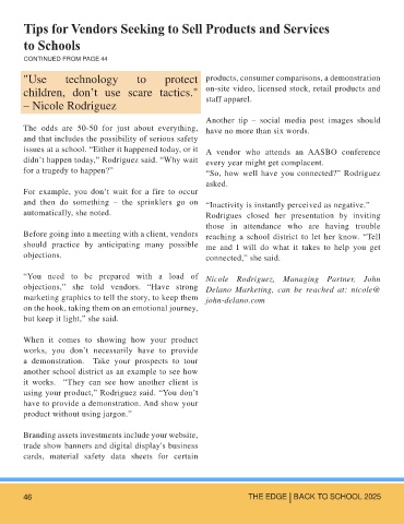 issues at a school. “Either it happened today, or it A vendor who attends an AASBO conference
