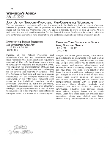 pre-conference workshop. Two informative pre-conference workshops will be offered in 2013: