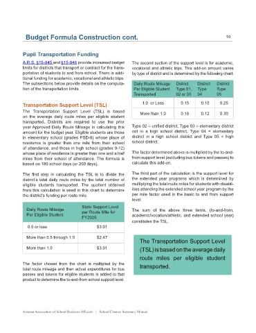 portation of students to and from school. There is addi- by type of district and is determined by the following chart: