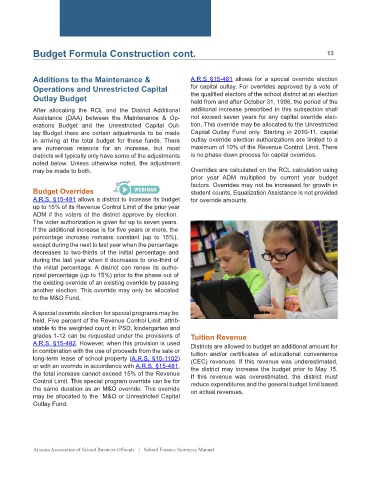 Additions to the Maintenance & A.R.S §15-481 allows for a special override election